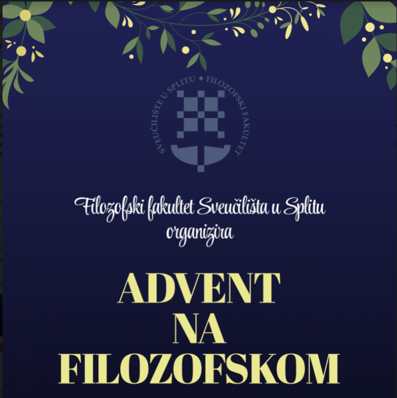 I ove godine, Filozofski fakultet Sveučilišta u Splitu organizira Advent na Filozofskom. Advent se odvija od 04. do 21. prosinca i nudi pregršt predivnih druženja, radionica, edukacija, umjetničkih predstava... Pridružite nam se i otkrijte Advent na Filozofskom!