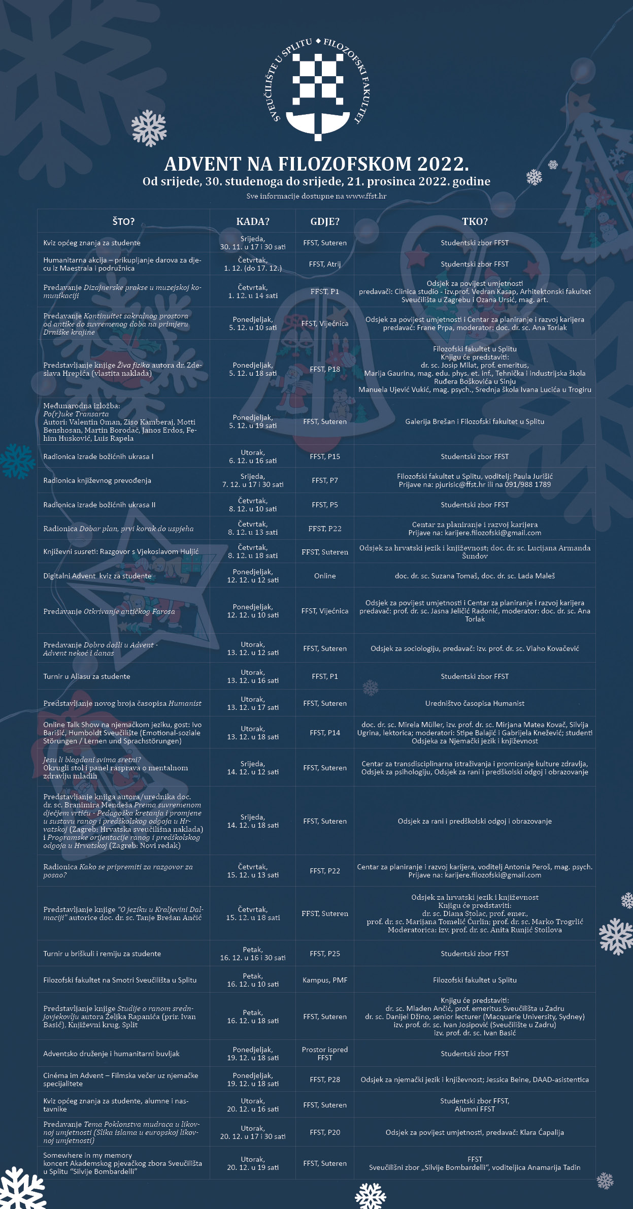 ADVENT NA FILOZOFSKOM 2022. : od srijede, 30. studenoga do srijede, 21. prosinca 2022. godine