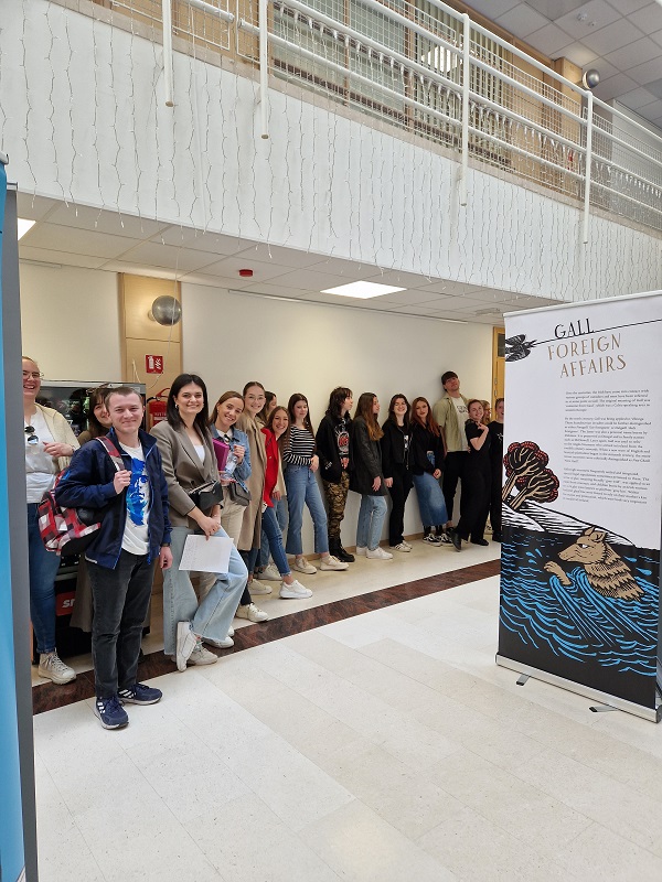 Na prigodnom sastanku povodom zatvaranja izložbe, uvažena gošća gđa. Aisling Kearns, zamjenica Veleposlanika Republike Irske, susrela se s prof. dr. sc. Inom Reić Ercegovac, prodekanicom za nastavu, izv. prof. dr.sc. Antonelom Marić, prodekanicom za međunarodnu suradnju, i izv. prof. dr. sc. Brianom Willemsom, profesorom s Odsjeka za engleski jezik i književnost.