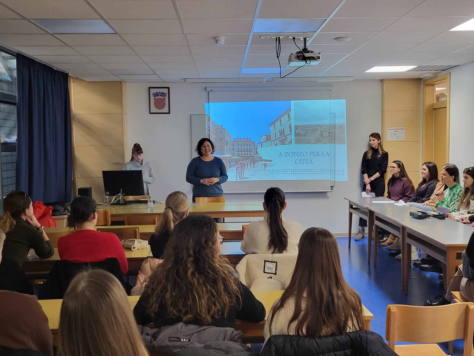U sklopu događanja Advent na Filozofskom u Organizaciji Odsjeka za talijanski jezik i književnost, 15. prosinca 2023. studentice 2. godine Diplomskog studija talijanistike održale su predavanje pod naslovom A zonzo per la città - paesaggio linguistico spalatino učenicima II. gimnazije Split koji su došli u pratnji njihove profesorice talijanskog jezika Anamarije Brzica. Događanje su moderirale doc. dr. sc. Andrea i Rogošić i doc. dr. sc. Antonia Luketin Alfirević.