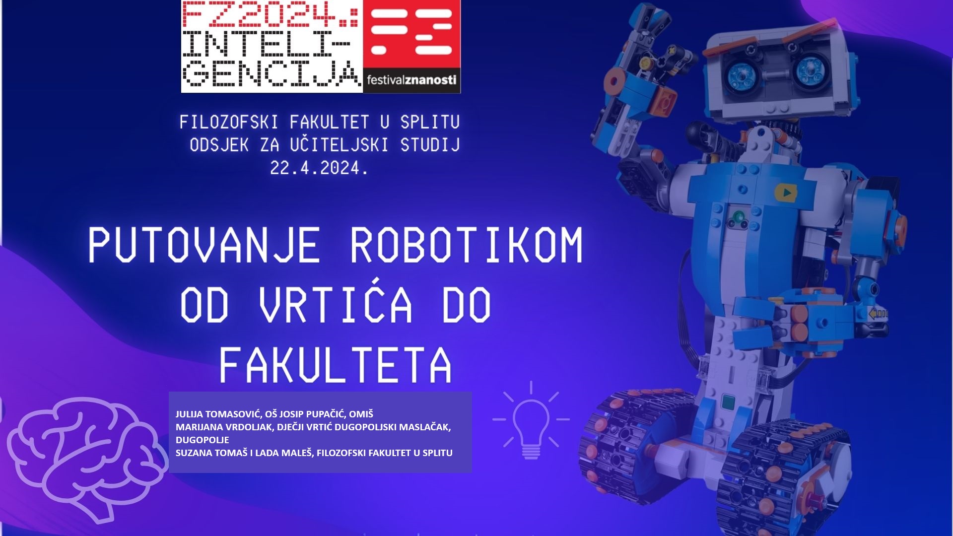 Radionica je namijenjena studentima s ciljem pružanja praktičnih vještina i strategija za učinkovitu integraciju robota u nastavu. Studenti će koristiti robote kao alat za poticanje interaktivnog učenja i razvoja vještina prateći sve uzraste od vrtića do fakulteta. Poseban naglasak bit će stavljen na pripremu za realizaciju nastavnog sata te prilagodbu sadržaja prema različitim dobnim skupinama i stvaranje poticajnog okruženja za učenje.