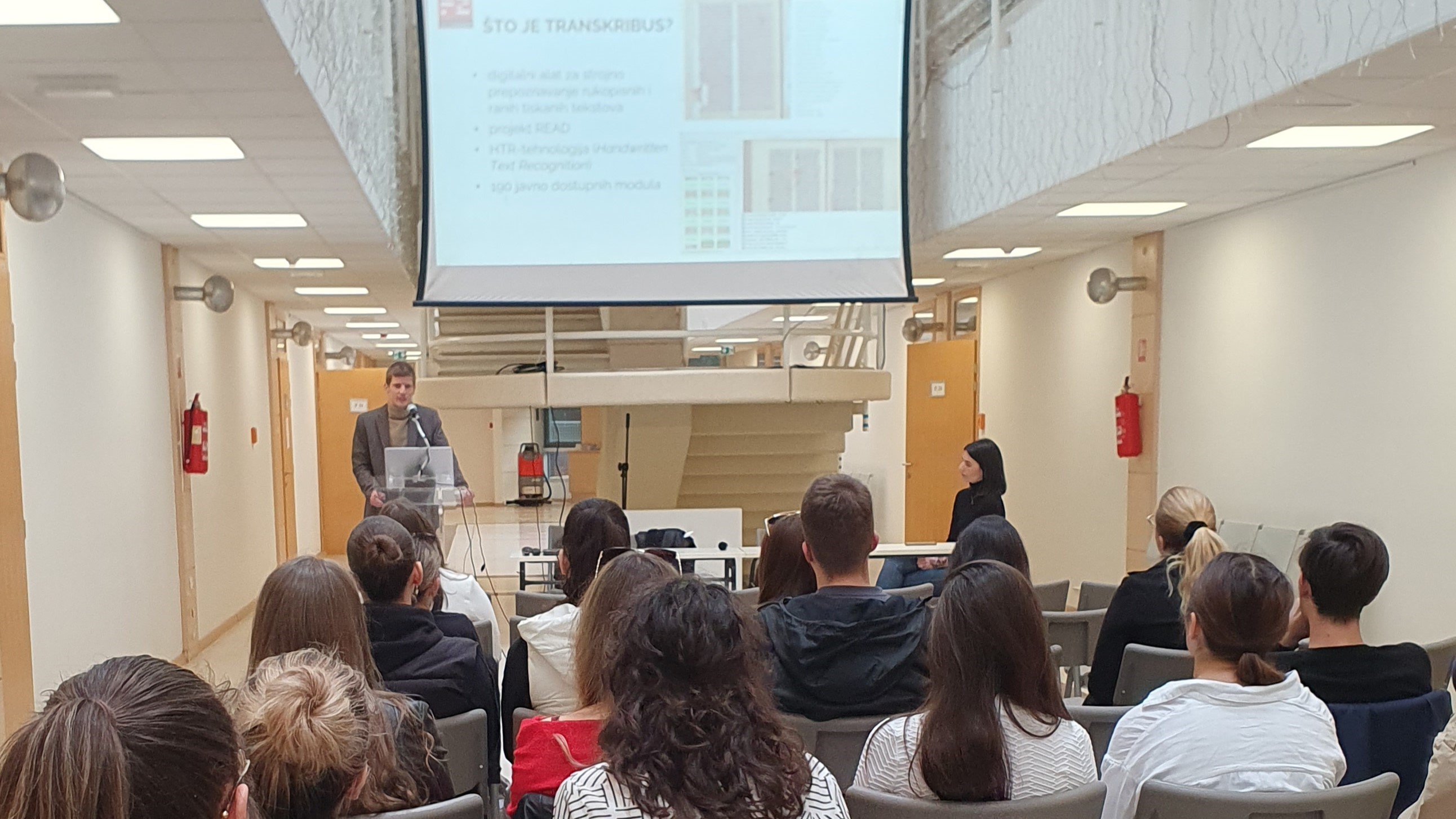 Izv. prof. dr. sc. Katarina Lozić Knezović s pomoću prikaza tekstova predstavila je kako hrvatskoglagoljska pismenost, tj. popovi glagoljaši inteligentnom domišljatošću pokazuju inovativnost pri ostvarivanju ideja i namjera koje su im bile primarne - štednje podloge za pisanje, prostora predviđenoga za pisanje, utroška vremena pisanja te „štednje“ čitača, odn. olakšavanju čitanja glagoljskih tekstova. Pojasnila je kako su to ostvarili četirima postupcima kraćenja riječi, koje zbog njihove estetske vrijednosti prihvaća i glagoljski tisak. Istaknuto je kako je, u namjeri prihvaćanja postupka ligaturiranja, izumljena je tehnika kompozitnih ligatura, što se više nigdje u povijesti inkunabula nije ponovilo. Izdvojeni su inkunabula Spovid općena, prva tiskanu knjiga na čakavštini i jedina hrvatska neliturgijska inkunabula te prvotisak Misala – prvi misal u Katoličkoj crkvi tiskan na narodnom jeziku, a ne na latinskome. Naglašeno je kako glagoljaši prvi u povijesti hrvatskoga tiskarstva (Senj) uspostavljaju tipografski znak. Nadalje je izloženo kako su u rukopisima iznalažena rješenja pri naknadnom dopisivanju ispuštenih dijelova teksta te da je glagoljični brojevni sustav dosljedan s izraženom originalnom autorskom koncepcijom koja ne slijedi grčko pismo. Dr. sc. Ana Šimić u predavanju je pokazala kako glagoljica i drugi dijelovi glagoljaške prošlosti opstaju u današnjem hrvatskom javnom prostoru te kako se prilagođavaju novim vremenima, novim korisnicima i novim značenjima koja se u njih upisuju. Predstavljene su suvremene ligature i suvremeni glagoljski natpisi u kulturi, pop-kulturi i supkulturi te prilagodbe glagoljaških motiva suvremenim marketinškim potrebama. Pritom je naglašen inovativan vid takvih praksi. Dr. sc. Josip Galić u svojem se dijelu predavanja posvetio temi strojnoga transliteriranja hrvatskoglagoljičnih tekstova, odnosno uporabi digitalnoga alata Transkribus. Poseban je fokus bio na prikazu dvaju modula koji su u Transkribusu javno dostupni za čitanje hrvatskoglagoljičnih tekstova: Handwritten Glagolitic i Glagolitic Printings. Pokazano je također kako se u Transkribusu obučavaju privatni moduli, koji u čitanju specifičnih tekstova postižu veću učinkovitost od javno dostupnih modula.