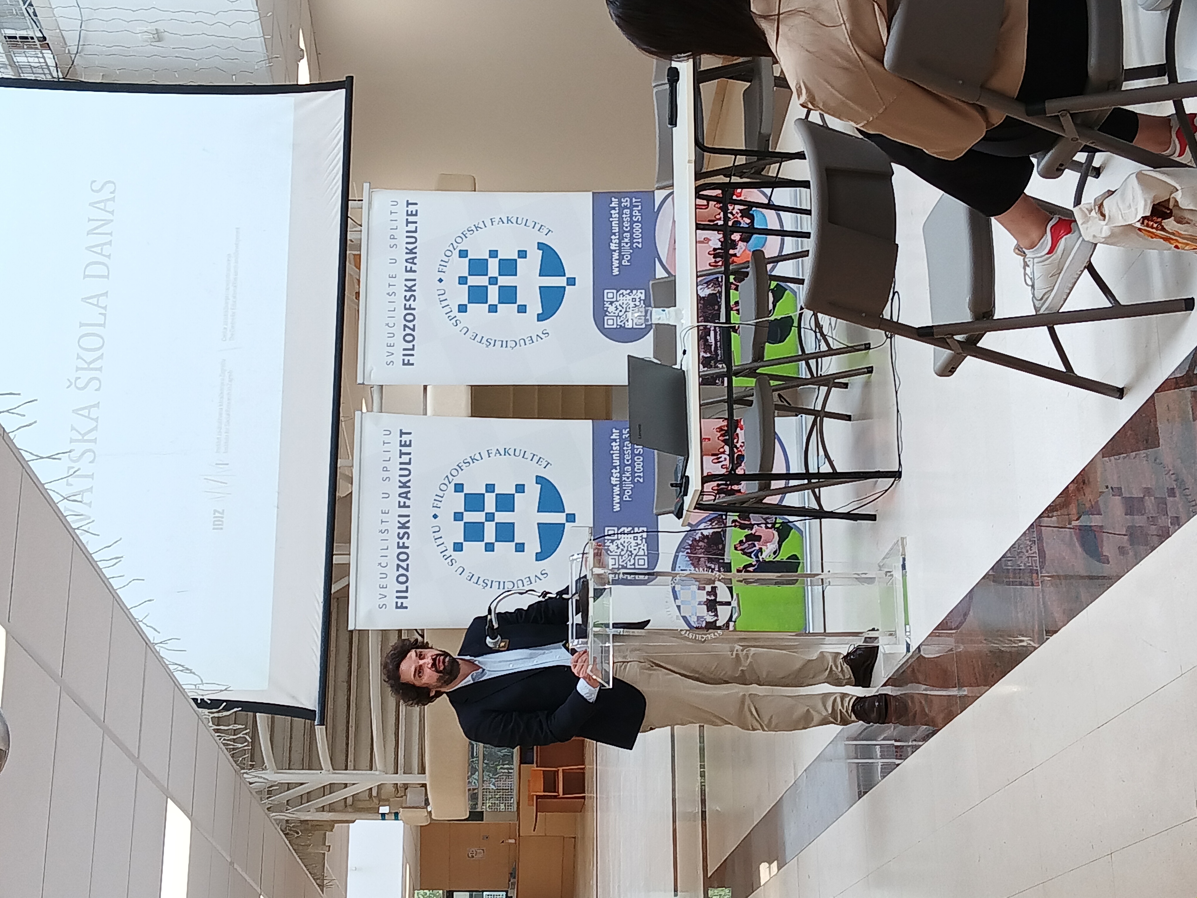 U ponedjeljak, 6. svibnja 2024. godine, s početkom u 11:00 sati, održano je izuzetno inspirativno predavanje dr. sc. Borisa Jokića na temu "Suvremeni aspekti obrazovanja – Kako se obrazovanje može uspješno boriti s polarizacijom, umjetnom inteligencijom i drugim megatrendovima našeg vremena". Predavanje je održano u suterenu Fakulteta pred brojnom publikom koja se sastojala od studenata, profesora i zainteresiranih građana.
