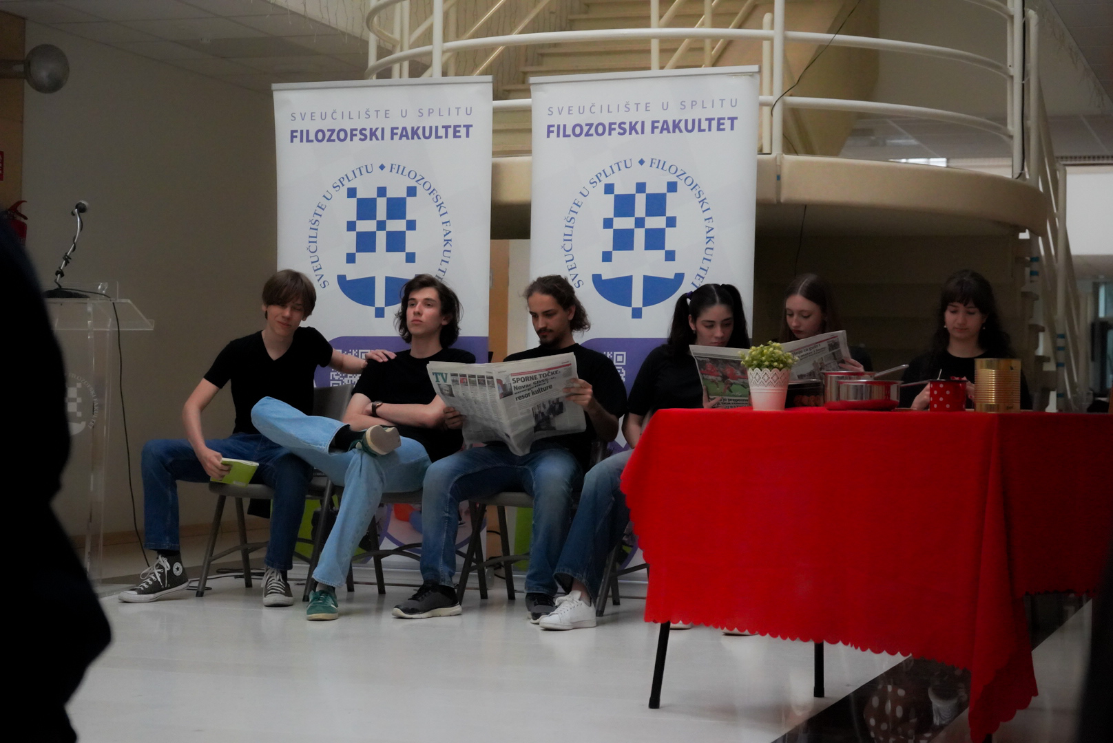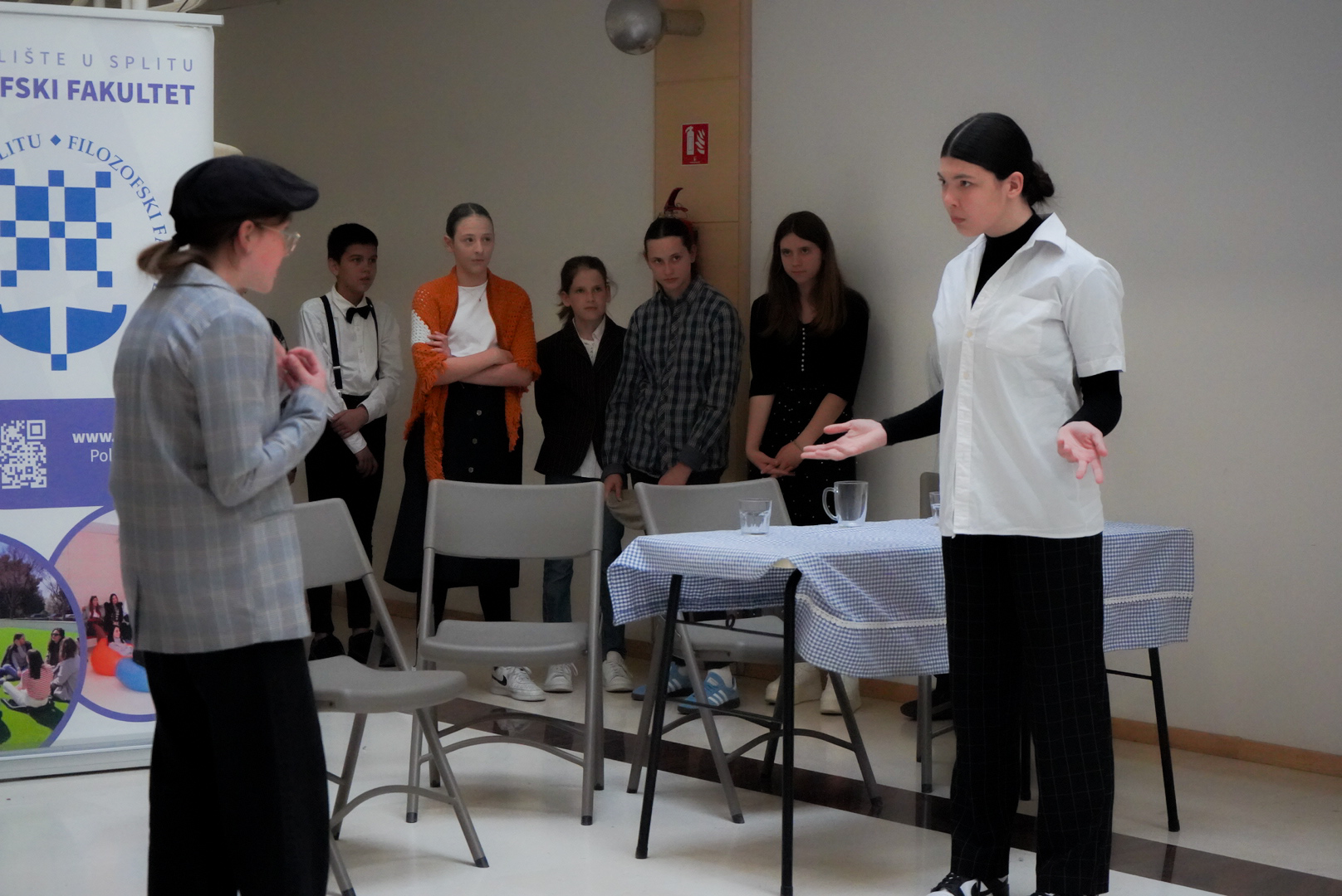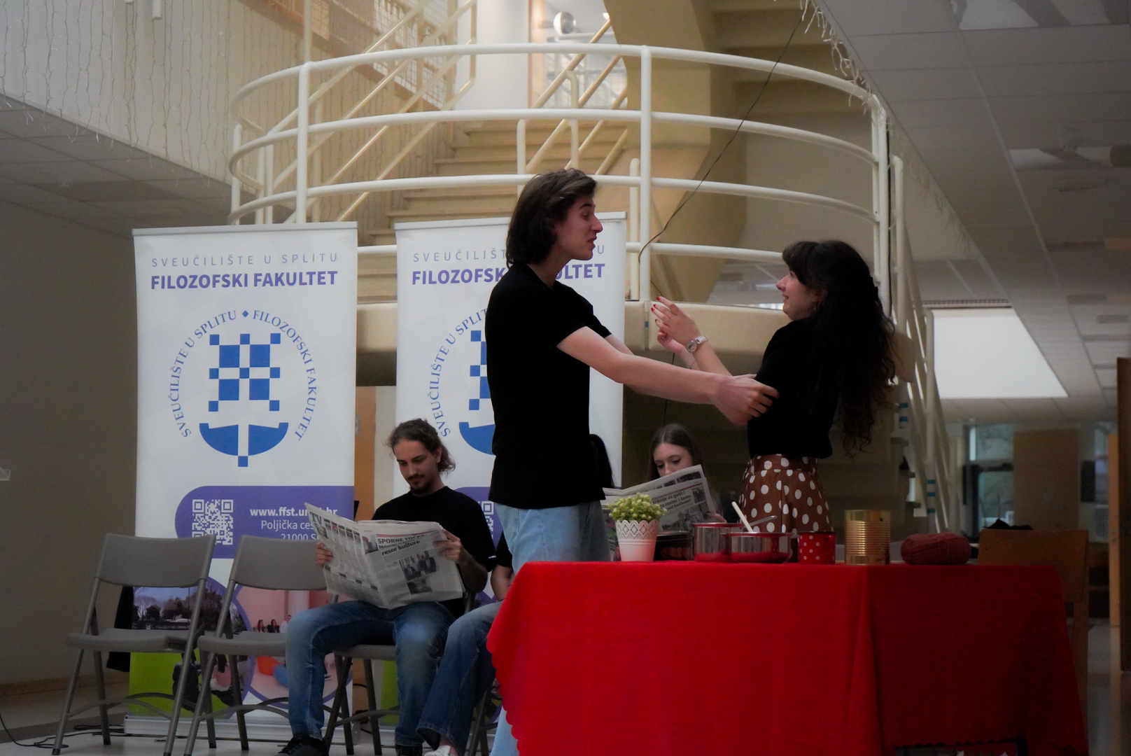 Učenici Osnovne škole Manuš (Renata Širović, prof.), I. gimnazije (Sanda Cambi, prof.), učenici viših razreda Osnovne škole Žrnovnica (Martina Lovrić, prof.) i Mate Tavrić, student Diplomskoga studija Gluma na Odsjeku za kazališnu umjetnost Umjetničke akademije u Splitu, održali su izvrsnu predstavu pod nazivom "Mladi igraju Smoju", dana 8. svibnja 2024. godine na Filozofskom fakultetu u Splitu.