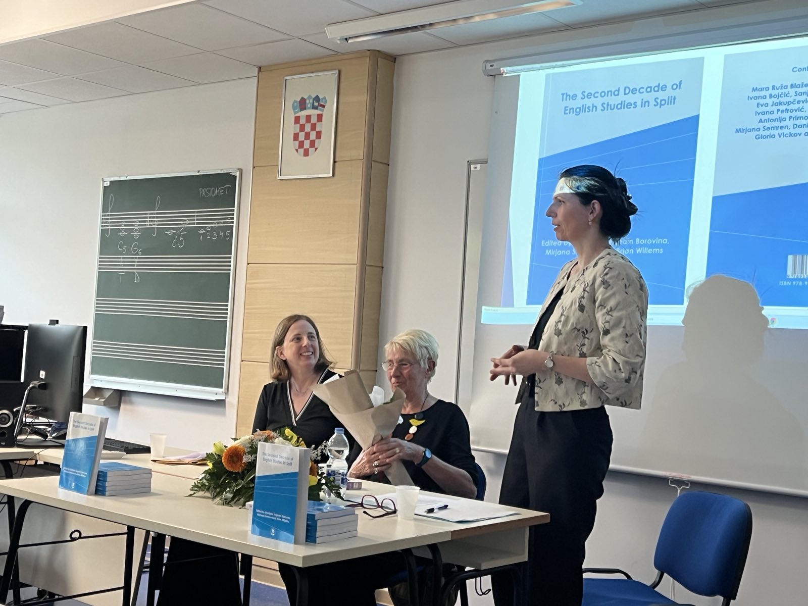 Lingvistički dio zbornika predstavila je red. prof. u miru Dunja Jutronić, a o književnom dijelu govorio je izv. prof. dr. sc. Brian Willems. U drugom dijelu predstavljanja, profesorica Jutronić govorila je o profesionalnom putu pokojne redovite profesorice u trajnom zvanju Sanje Čurković Kalebić i o važnoj ulozi profesorice Čurković Kalebić u razvoju i djelovanju Odsjeka za engleski jezik i književnost.