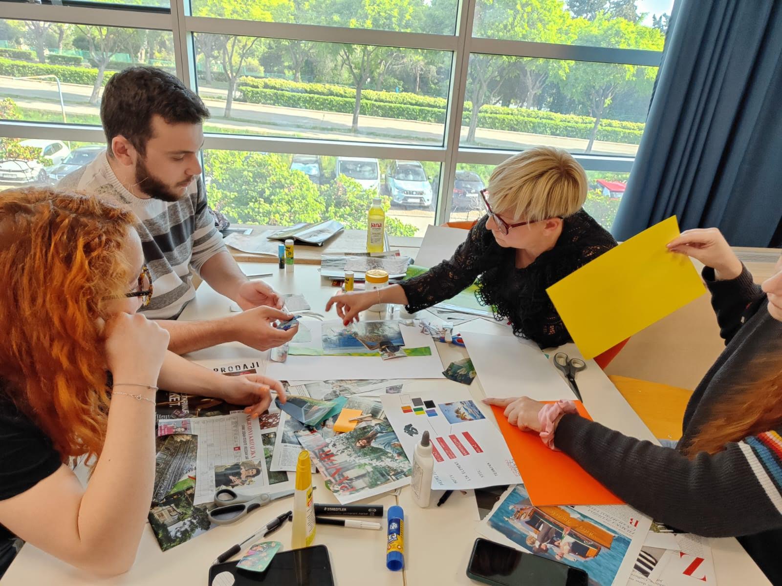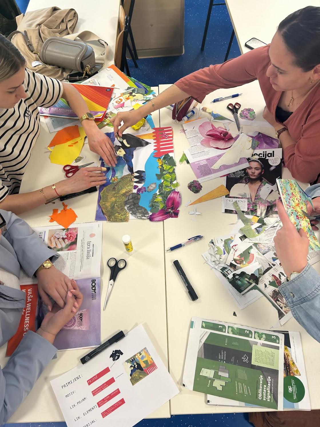 U okvirima provedene radionice studenti su kreativno i samostalno istraživali likovno stvaralaštvo. Studenti su tijekom likovnih aktivnosti podijeljeni u pet skupina te su u svakoj skupini stvarali zajednički likovni uradak prema dodijeljenom zadatku. Zadatci su sadržavali određene elemente likovnog jezika, motiv, likovnu tehniku i stil umjetnika kao referencu (pop-art, nadrealizam, suvremenu umjetnost, impresionizam, postimpresionizam. U program Adobe Firefly upisali smo promptove jednake kao i zadane studentima u okviru motiva, likovnog jezika, tehnika i referenci na stil umjetnika.