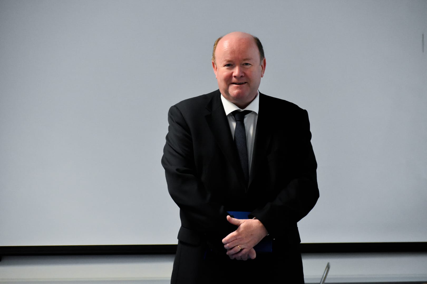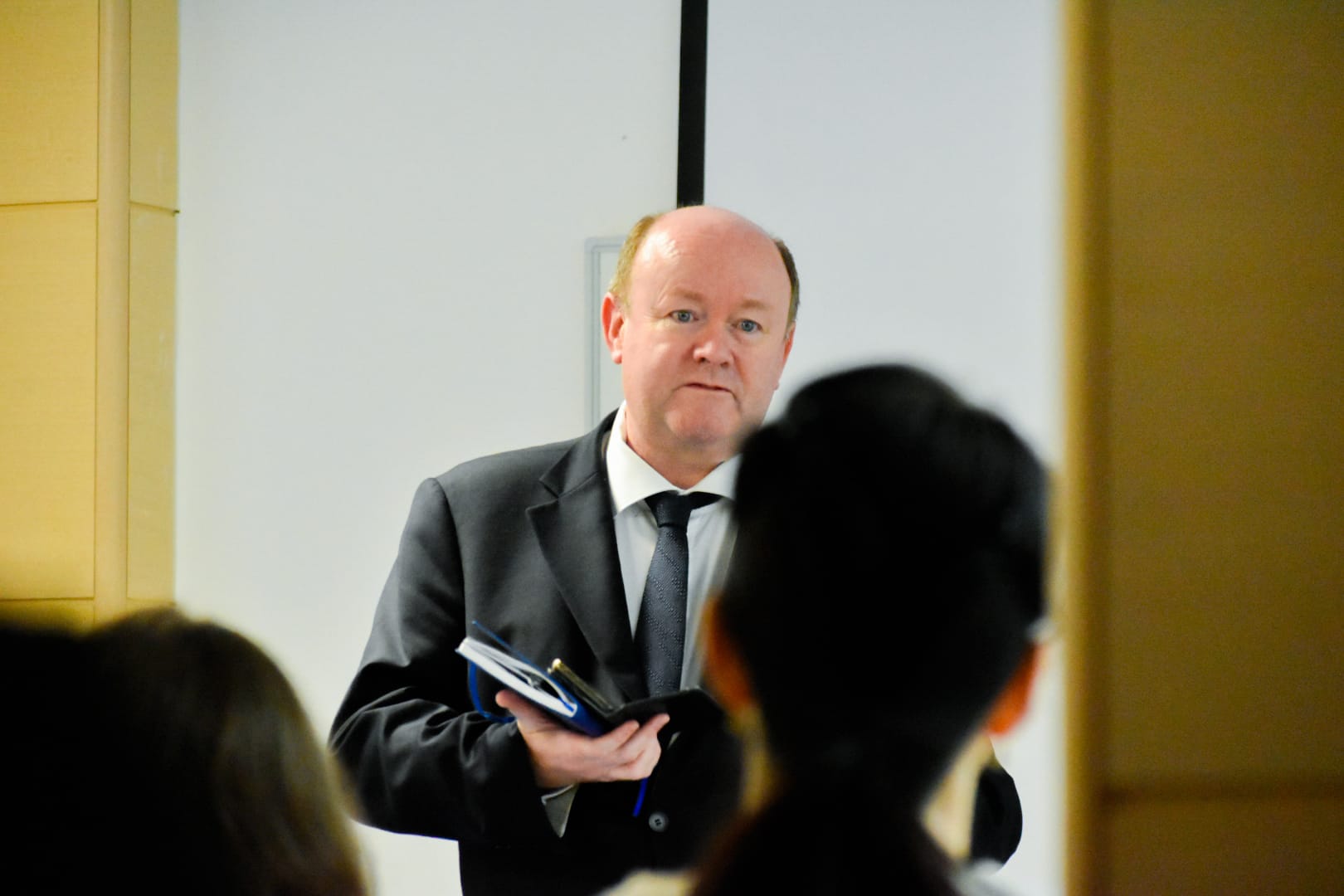 Prilikom posjete, prvo se susreo s dekanicom Filozofskog fakulteta u Splitu, prof. dr. sc. Inom Reić Ercegovac, prodekanom za znanost i međunarodnu suradnju doc. dr. sc. Nikšom Varezićem i voditeljicom doktorskog studija izv. prof. dr. sc. Antonelom Marić. Nakon toga, održao je predavanje o Republici Irskoj i izložbi "Seamus Heaney: Listen Now Again" studentima i zainteresiranim suradnicima i obišao izložbu koja je postavljena u suterenu fakulteta.