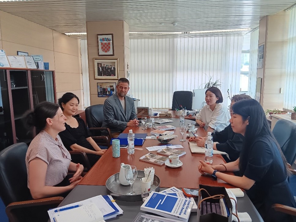 Stručno povjerenstvo za osnivanje King Sejong Instituta u razgovoru s direktorom KSI Split izv. prof. dr. sc. Vedranom Barbarićem, administrativnom voditeljicom Chaewon Oh i zadovoljnom polaznicom jezičnog tečaja