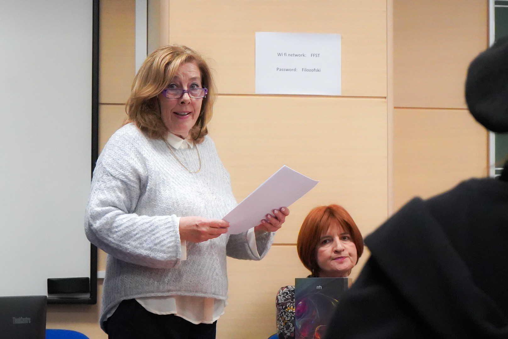 U četvrtak 5. prosinca 2024., u sklopu manifestacije Advent na Filozofskom, održana je promocija dvojezične zbirke pjesama Maje Tomas Bez riječi / Ohne ein Wort. Zbirku su predstavile dr. sc. Gordana Laco, izv. prof. s Odsjeka za učiteljski studij i dr. sc. Sandra Lukšić, doc. s Odsjeka za njemački jezik i književnost. Promociju je moderirala dr. sc. Anita Runjić-Stoilova, red. prof. s Odsjeka za hrvatski jezik i književnost. Stihove na hrvatskome jeziku govorila je sama autorica Maja Tomas, a one na njemačkome – student 3. godine Sveučilišnoga prijediplomskoga studija Njemački jezik i književnost Nikola Delić. Ugodnom ozračju večeri pjesmom je doprinijela i Ženska klapa Filip Dević.