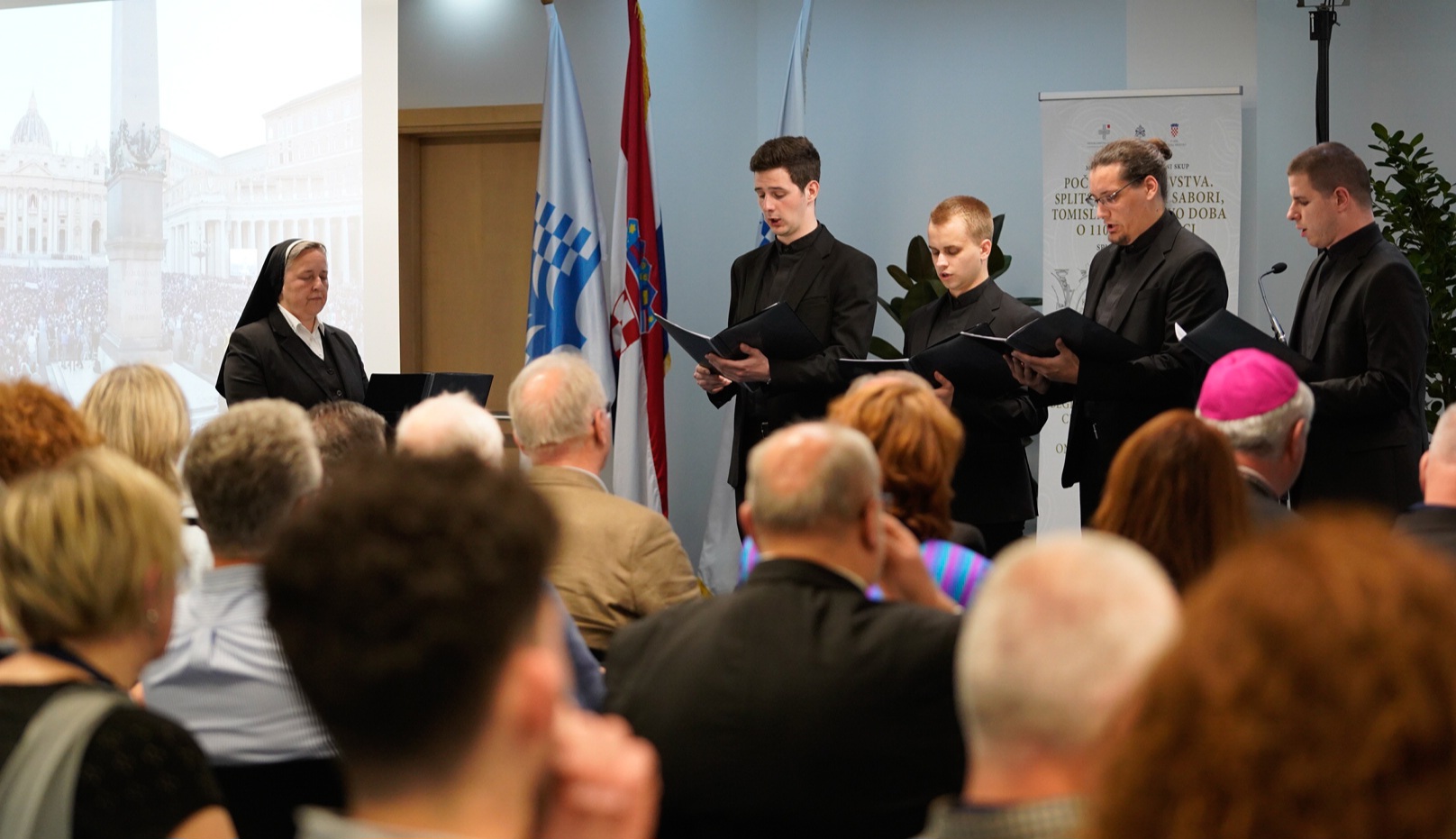 Moderatorica večeri bila je dr. sc. Jelena Đorđević s Odsjeka za hrvatski jezik i književnost Filozofskoga fakulteta u Splitu. Druženje je dodatno obogatio vokalni sastav bogoslova Centralnoga bogoslovnog sjemeništa u Splitu pod ravnanjem voditeljice č. s. Lidije Bernardice Matijević, koji je izveo pjesme Slava Bogu va višnjih i Otče naš.