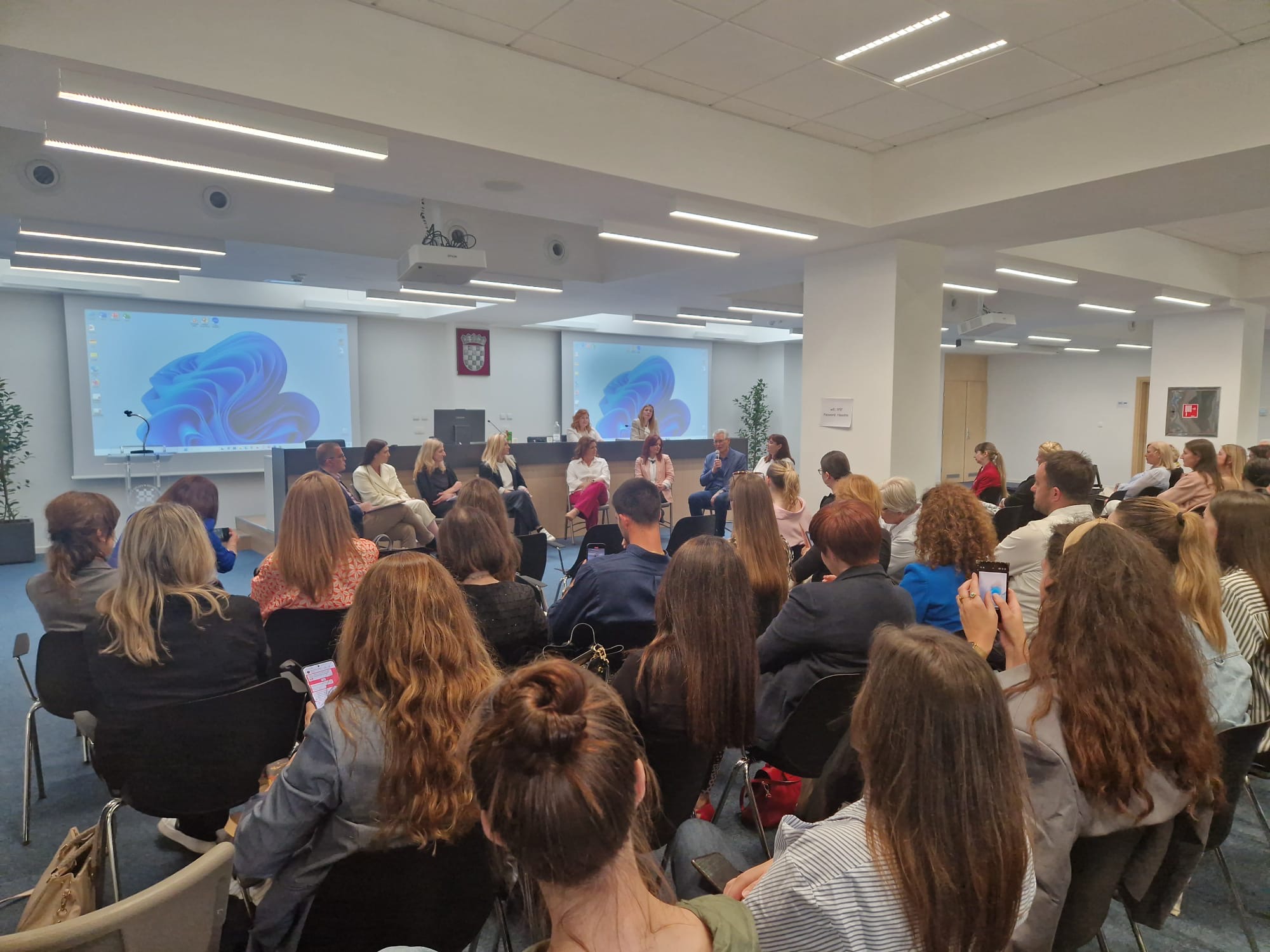 Dana 21. svibnja 2025. godine, na našem Fakultetu, u Dvorani Marka Marulića, održalo se predstavljanje znanstvene knjige Teorija i praksa partnerstva odgojno-obrazovne ustanove, obitelji i lokalne zajednice, autora profesorice emerite Maje Ljubetić i doc. dr. sc Tonija Maglice, kao i panel rasprava Tko se boji roditelja još? Izazovi i iskustva suradničkih odnosa odgojno-obrazovnih ustanova i roditelja.