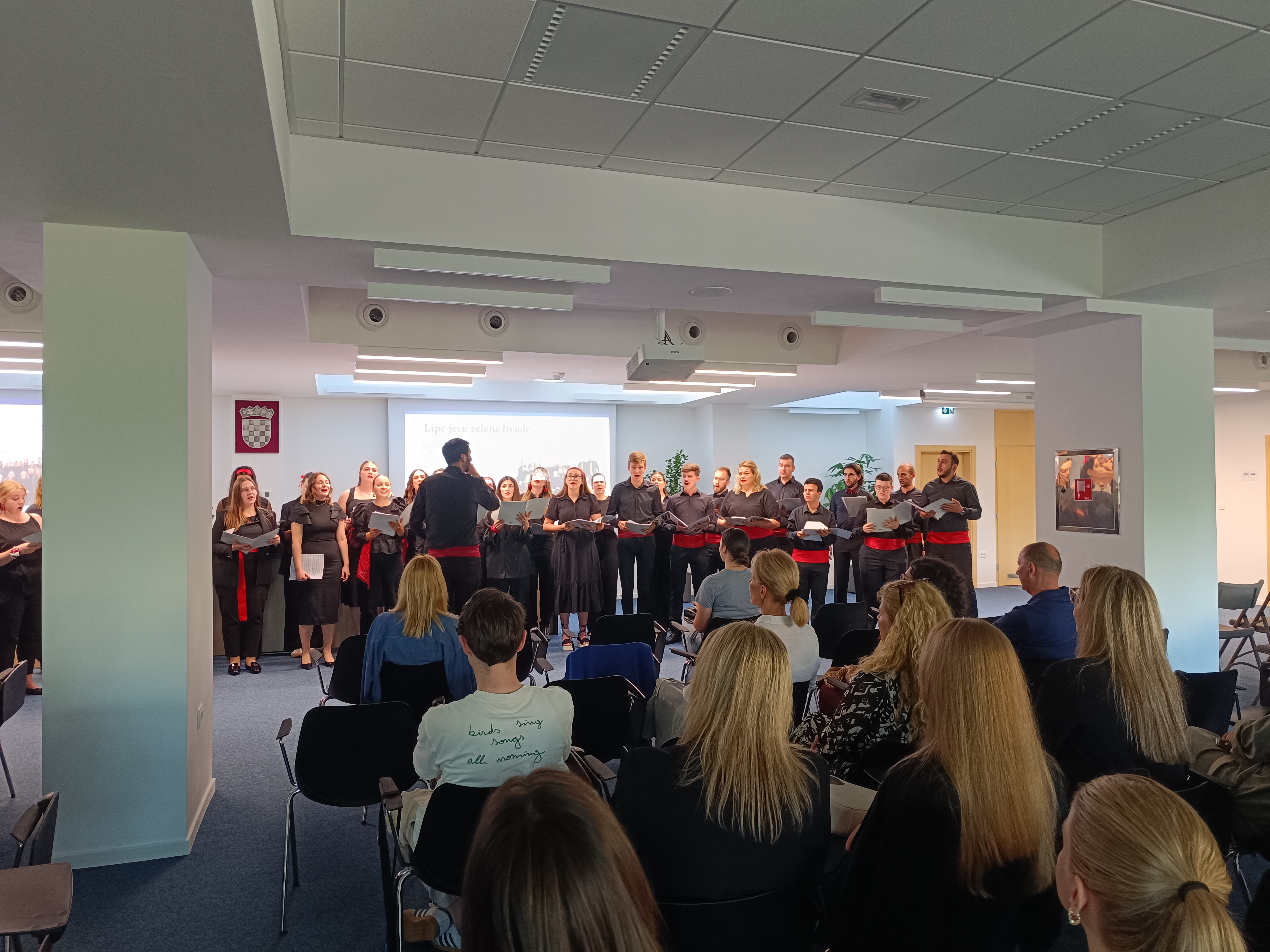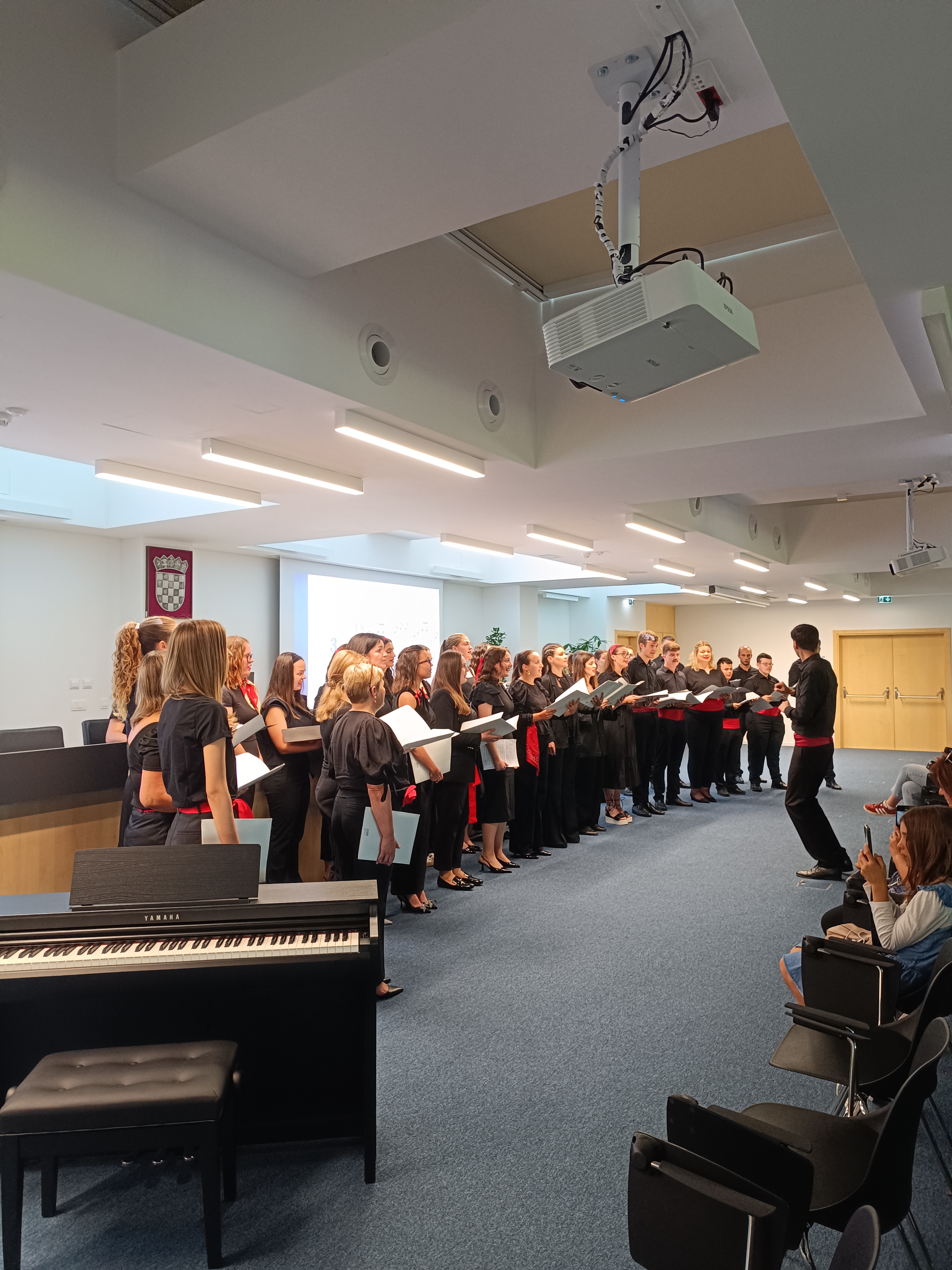 U ponedjeljak, 26. svibnja, u Dvorani Marka Marulića održano je prigodno glazbeno druženje s mješovitim pjevačkim zborom našega fakulteta, pod vodstvom doc. dr. sc. Marija Krnića, a u okviru manifestacije Svibanjska druženja. Glazbenu večer, koja je okupila veliki broj naših studenata, zaposlenika i gostiju, zbor je otvorio izvedbama niza hrvatskih tradicijskih pjesama u obradama eminentnih domaćih glazbenika.