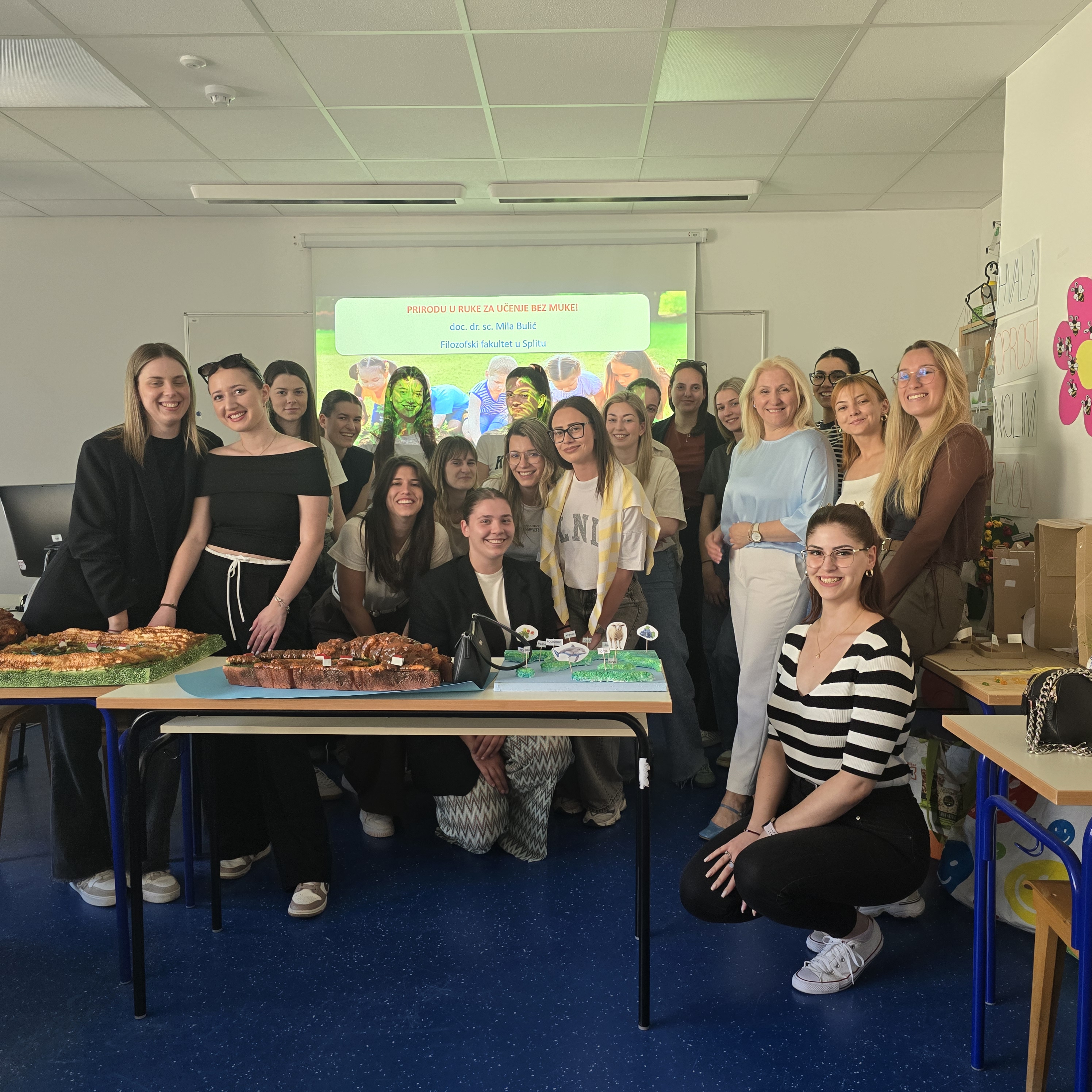 U ponedjeljak, 26. svibnja, održana je radionica za studente pod vodstvom doc. dr. sc. Mile Bulić, a u okviru manifestacije Svibanjska druženja. Tijekom radionice ukazano je na važnost korištenja različitih izvora znanja u nastavi prirodoslovnih predmeta. Poseban naglasak stavljen je na modele, makete i diorame – realistične 3D prikaze ekosustava, koje učenicima omogućuju prostorno sagledavanje prirodne pojave koje su često nevidljive "golim okom". Sve prikazane modele i diorame izradili su studenti 5. godine učiteljskog studija u sklopu kolegija Metodika nastave Prirode i društva.