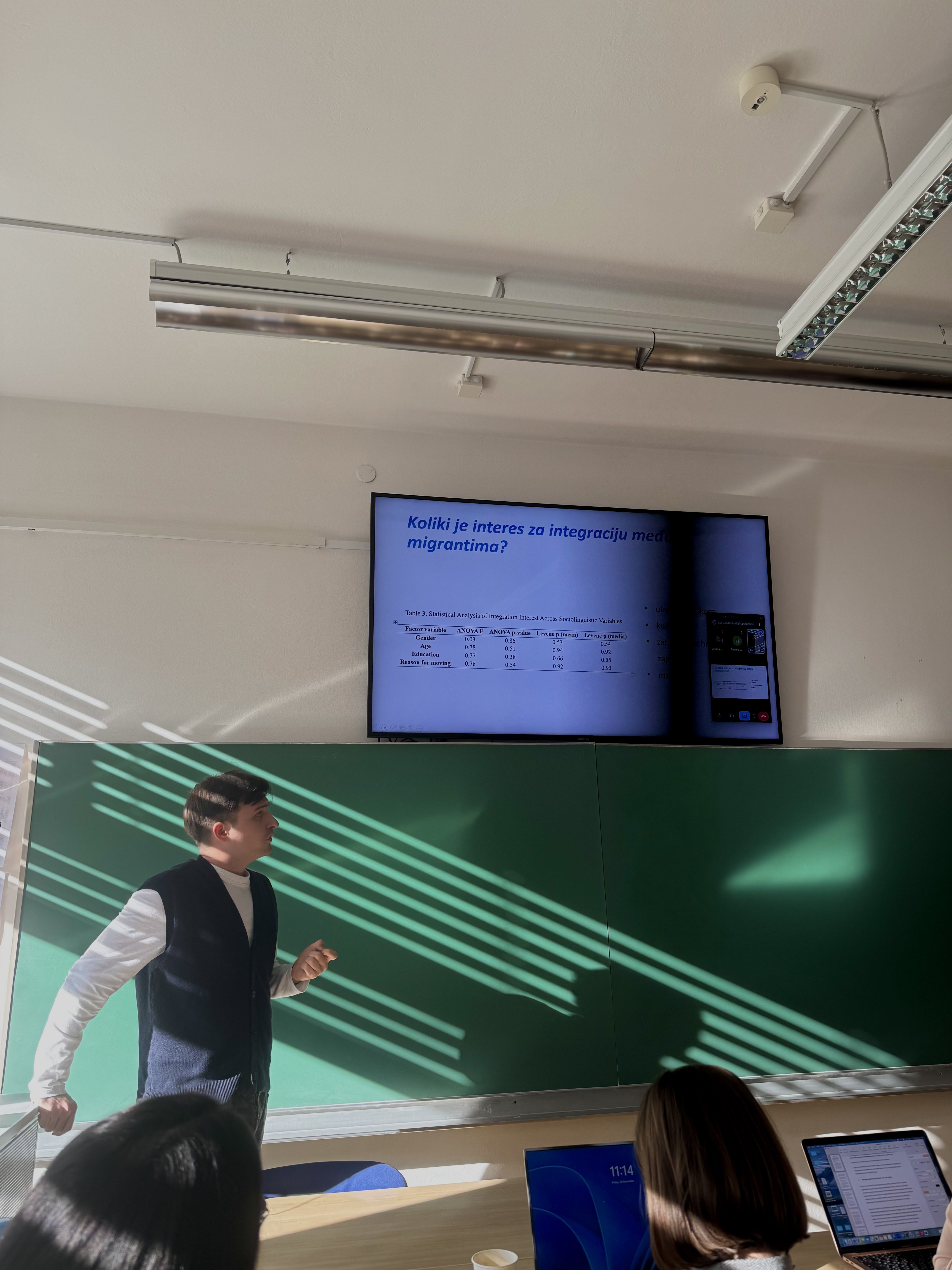 Naš student treće godine prijediplomskoga studija, Roko Karaman, započeo je studentska izlaganja ovogodišnjega Simpozija s temom Izumiranje nestandardnih idioma i prevlast standarda u medijskome diskursu: društveni mit ili osiromašenje hrvtskoga jezika?. Uz kolegu Karamana, svoje je izlaganje Slavenska mitologija kao osnova ranoga odgoja za prirodu i baštinu predstavila kolegica Ela Vlašić s druge godine diplomskoga studija. Na Simpoziju je sudjelovao i nedavno diplomirani kolega Blaž Gudelj, predstavivši svoju temu Linguistic integration of foreigners in Split – reality or myth.