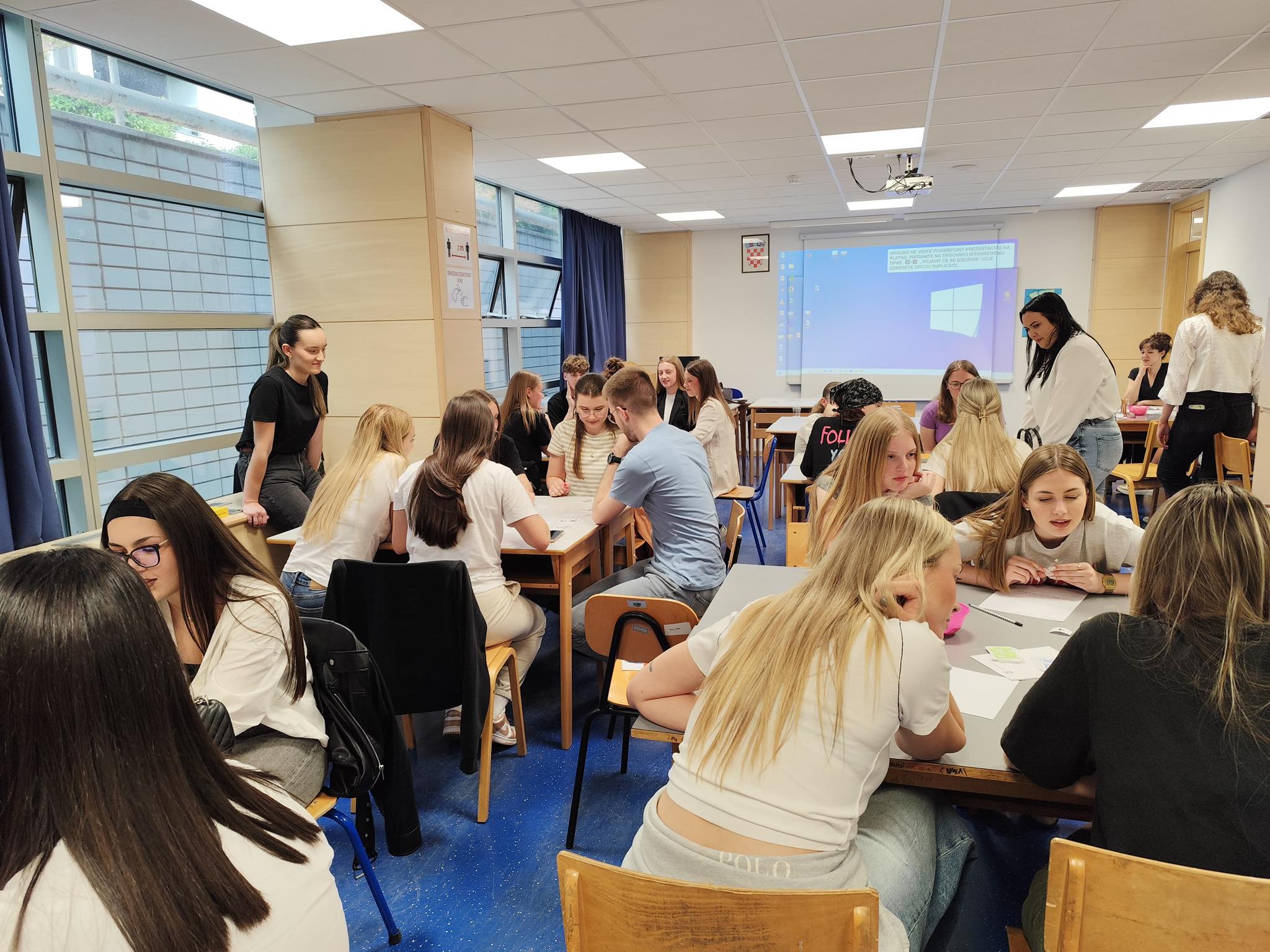 The language workshop, designed as a series of interactive activities in Italian and Spanish, was moderated by Asst. Prof. Antonia Luketin Alfirević, PhD, and Asst. Prof. Andrea Rogošić, PhD. The games were led by second-year Master's students of Italian Studies, while the participants included pupils from the Second Gymnasium in Split, accompanied by their Italian and Spanish teachers, Anamarija Brzica and Fani Marđokić, as well as first-year undergraduate students of Italian Language and Literature.