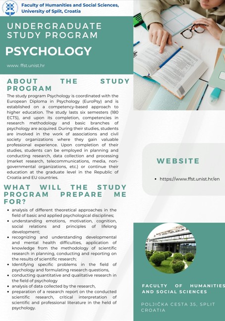 The Department of Psychology at the Faculty of Humanities and Social Sciences in Split announces the Call for student enrollment in the 2025/2026 academic year.