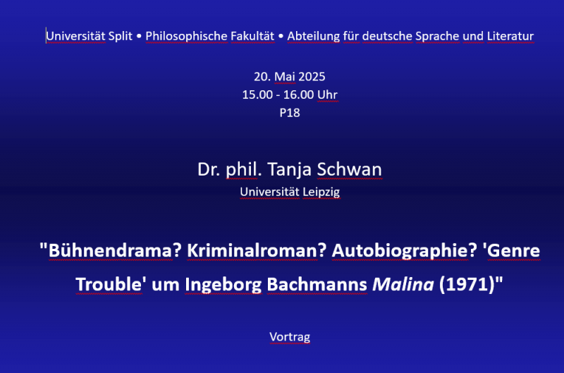 Predavanje dr. phil. Tranje Schwan sa Sveučilišta u Leipzigu održat će se 20. svibnja 2025. godine od 15.00 do 16.00 sati u P18.