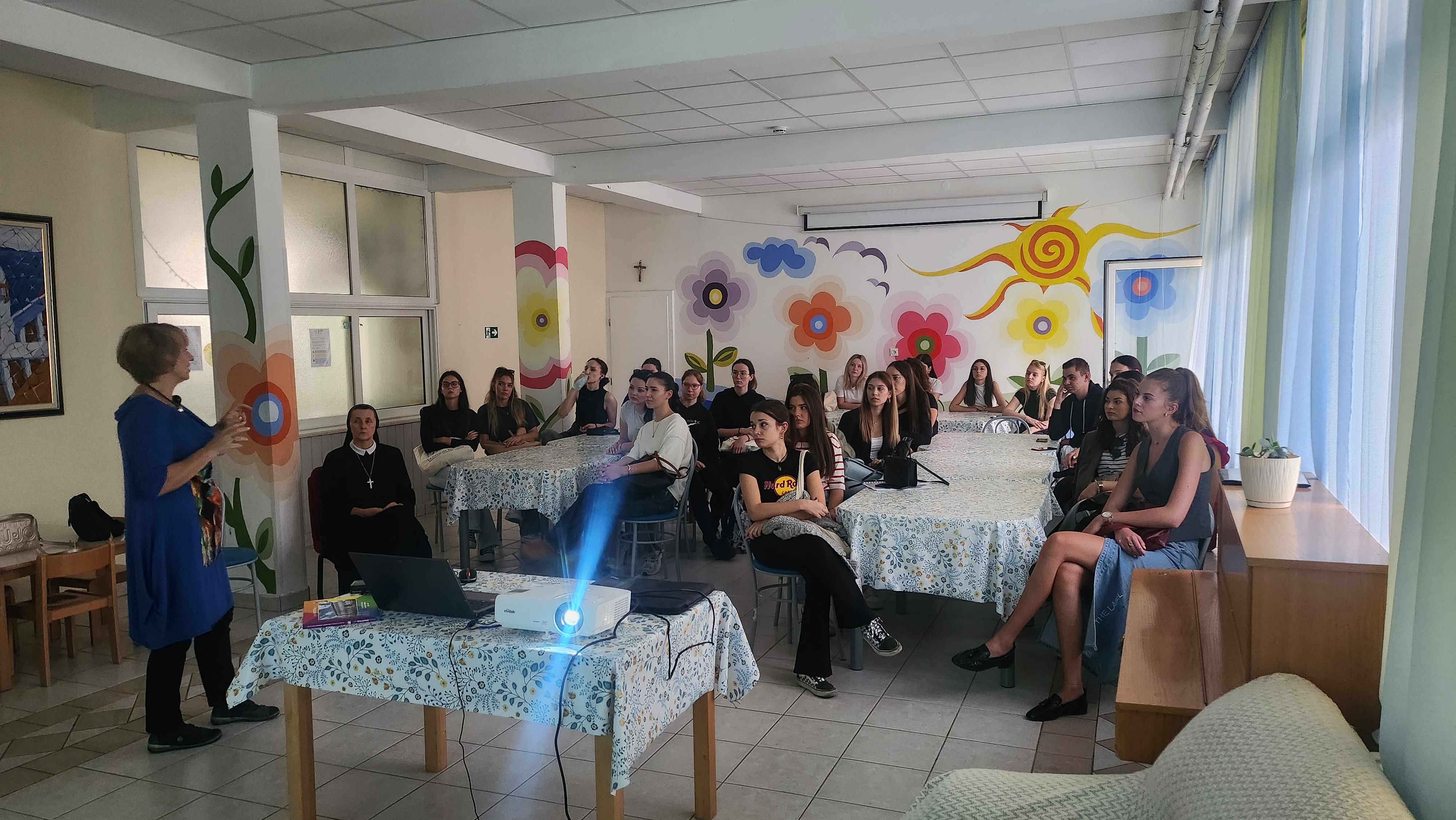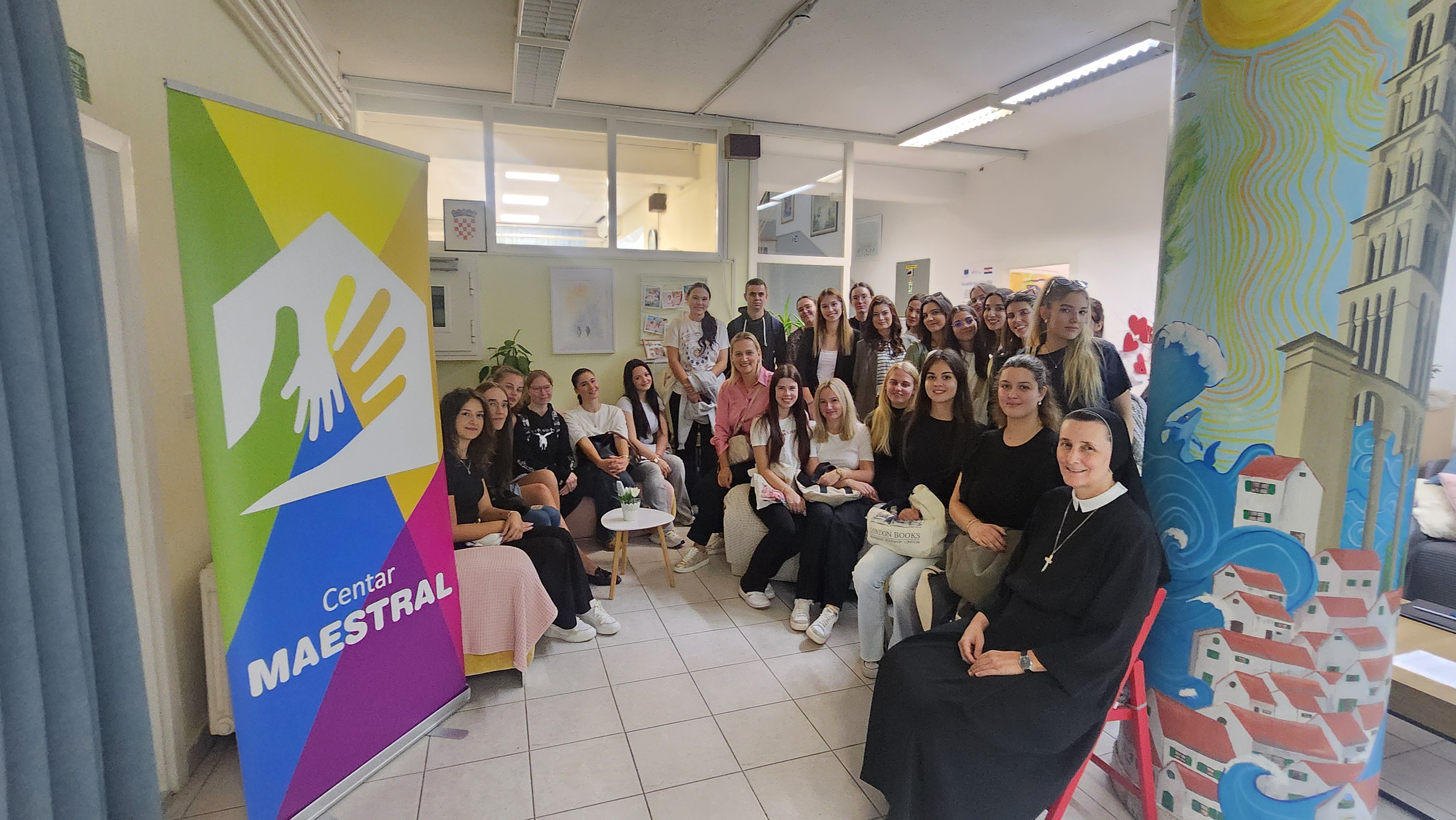 U okviru kolegija Domska pedagogija, studenti pedagogije Filozofskog fakulteta su posjetili Centar za pružanje usluga u zajednici Maestral s profesoricama dr. sc. Marijanom Ćuk i izv. prof. dr. sc. Ines Blažević. Rad Centra Maestral predstavila nam je voditeljica odgajateljica gđa Anita Jaman, prof.. Upoznala je studente s misijom i vizijom te cjelokupnim djelovanjem Maestrala. Obišli smo prostorije Maestrala, ali i bili u prilici susresti same korisnike. Posebno je bilo dirljivo razgovarati o odgajateljskim iskustvima sa samim korisnicima kao i pedagoškim smjernicama i preporukama budućim odgojno-obrazovnim djelatnicima. Zahvaljujemo ravnateljici gđi Jeleni Burazin koja je omogućila posjet, kao i svim djelatnicima Maestrala, a posebice njegovim korisnicima koji su pripremili predivni plakat dobrodošlice svojim gostima.