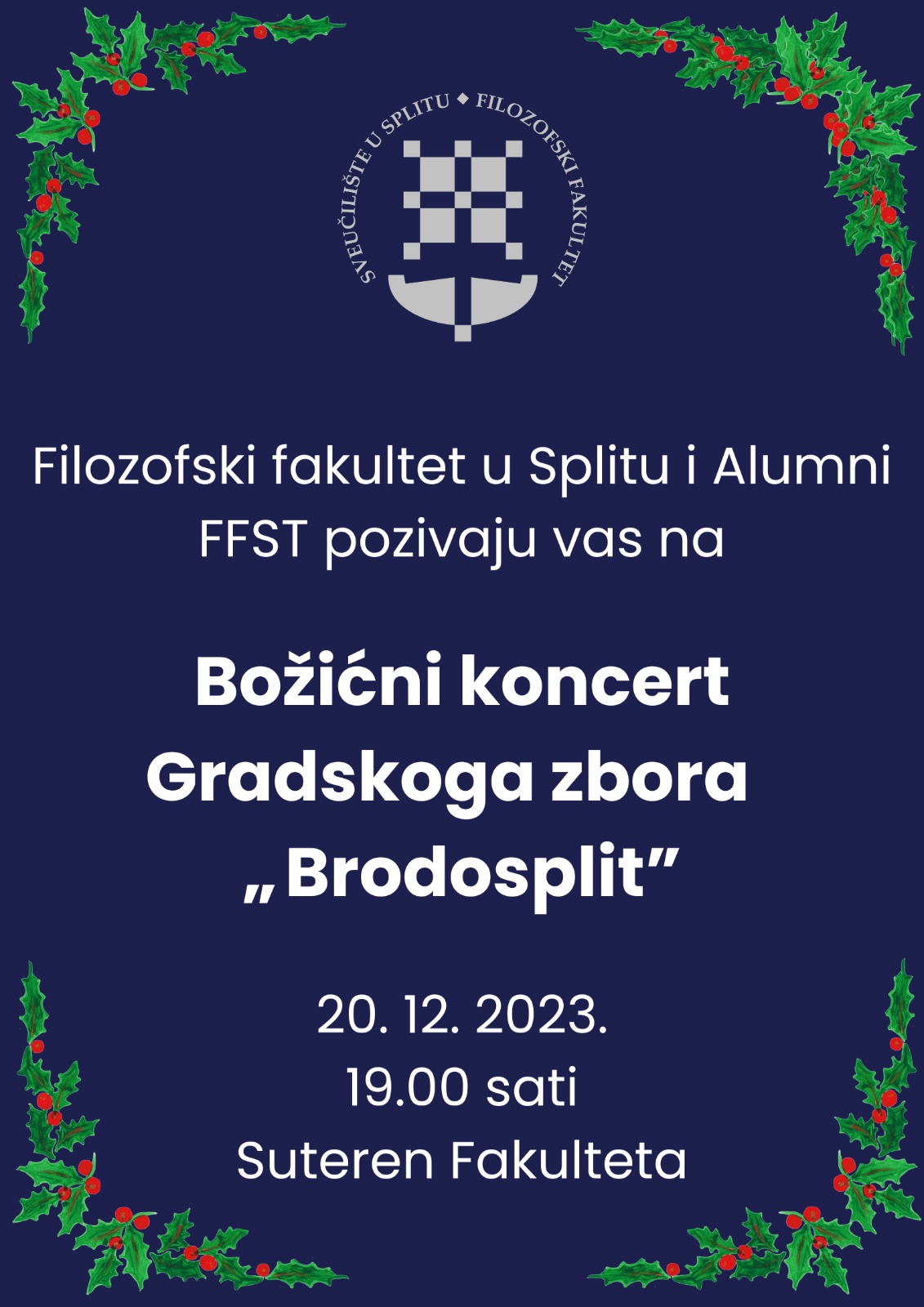 Vrhunac ovogodišnjih aktivnosti Udruge bio je svečani božićni koncert Gradskog zbora "Brodosplit" pod ravnanjem maestra Vlade Sunka. Okupljenom auditoriju pozdravnim se govorom obratila dekanica prof. dr. sc. Ina Reić Ercegovac. Zbor je izveo niz prigodnih domaćih i inozemnih božićni skladbi.