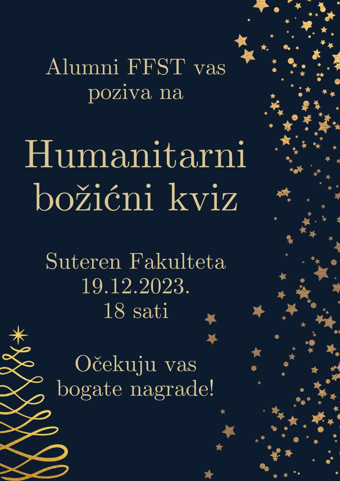 Udruga Alumni FFST organizirala je u suradnji sa studentima božićni kviz za studente i profesore. Osim druženja i zabave kojih nije nedostajalo, kviz je imao i humanitarnu notu jer su sva sredstva koja su prikupljena uplaćena za udrugu Down 21. Svima koji su pomogli u organizaciji kao i sudionicima zahvaljujemo na odazivu i sredstvima koja su donirali za humanitarnu akciju!