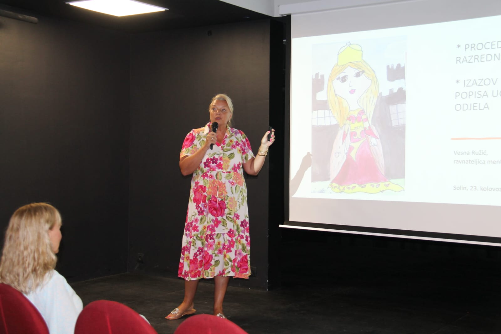 Tema predavanja i panel diskusije održane u solinskom Teatrinu pod nazivom "U zdravom tijelu zdrav duh" bila je važnost zdrave prehrane i redovite tjelesne aktivnosti za pravilan razvoj djece te logistički i ini izazovi s kojima su se susrele osnovne škole uvođenjem besplatne prehrane za sve učenike. O tim temama govorile su Vesna Ružić, ravnateljica OŠ kraljice Jelene (prehrana u školi - izazovi), Katarina Volarević, mag. prim. educ. (pravilna i zdrava prehrana), Vesna Žižić, tajnica SSSD grada Solina i okolice (važnost bavljenja plivanjem) te Sanja Ivančić, mag. prim. educ. (izazovi tjelesne i zdravstvene kulture u generaciji "Z") koja je bila i moderatorica predavanja.