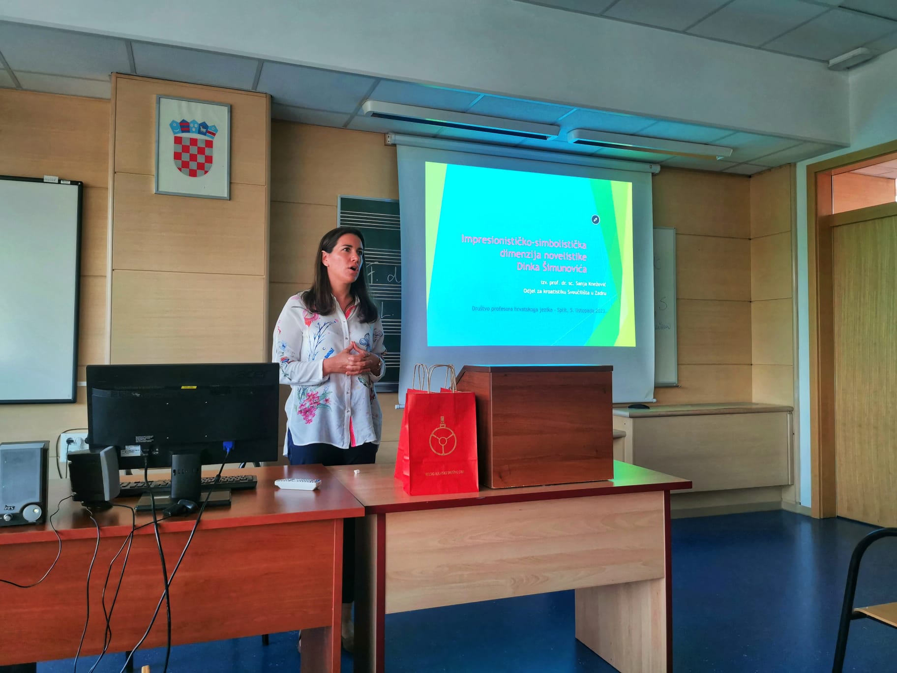 U četvrtak 5. listopada 2023. održan je stručni skup Dinko Šimunović (1873.–1933.–2023.) organiziran u suradnji s Društvom profesora hrvatskog jezika. Događajem je moderirao Branimir Romac, a predavanja su održale izv. prof. dr. sc. Sanja Knežević sa Sveučilišta u Zadru (Impresionističko-simbolistička dimenzija novelistike Dinka Šimunovića) i profesorica savjetnica i tajnica Društva Ankica Pokos (Alka - znamen i perjanica hrvatske baštine). Skup je svojim prisustvom obogatila i akademska glumica Katarina Romac koja je okupljenima pročitala izabrane ulomke iz Šimunovićevih djela.