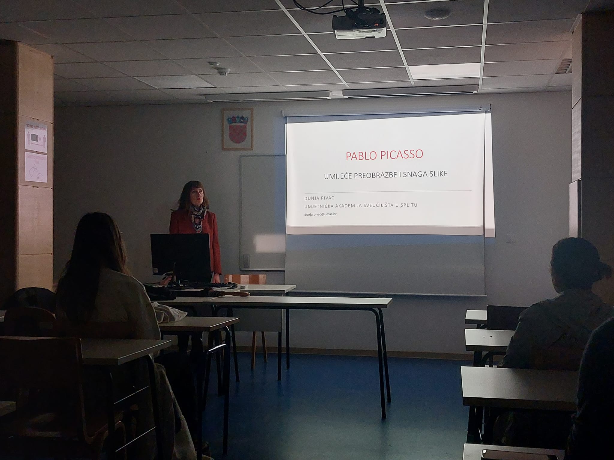 Izv. prof. dr. sc. Dunja Pivac održala je 22. studenog 2023. predavanje naslovljeno Pablo Picasso - umijeće preobrazbe i moć slike u kojem je pružila pregled bogatog i raznolikog opusa jednog od najvećih slikara u povijesti čovječanstva. Predavanjem se Udruga bivših studenata i prijatelja Filozofskog fakulteta u Splitu pridružila obilježavanju pedesete obljetnice smrti velikana likovne umjetnosti Pabla Picassa.