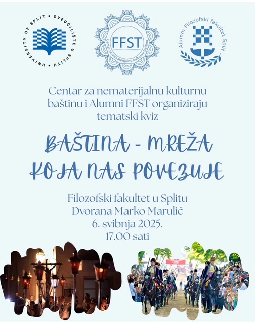 U sklopu Festivala znanosti i u suradnji s Centrom za nematerijalnu kulturnu baštinu Filozofskog fakulteta u Splitu organiziran je tematski kviz "Baština - mreža koja nas spaja" koji je okupio velik broj učenika splitskih srednjih škola i studenata Filozofskog fakulteta u Splitu s ciljem promocije nematerijalne kulturne baštine i povezivanja Fakulteta sa širom zajednicom u kojoj djeluje.