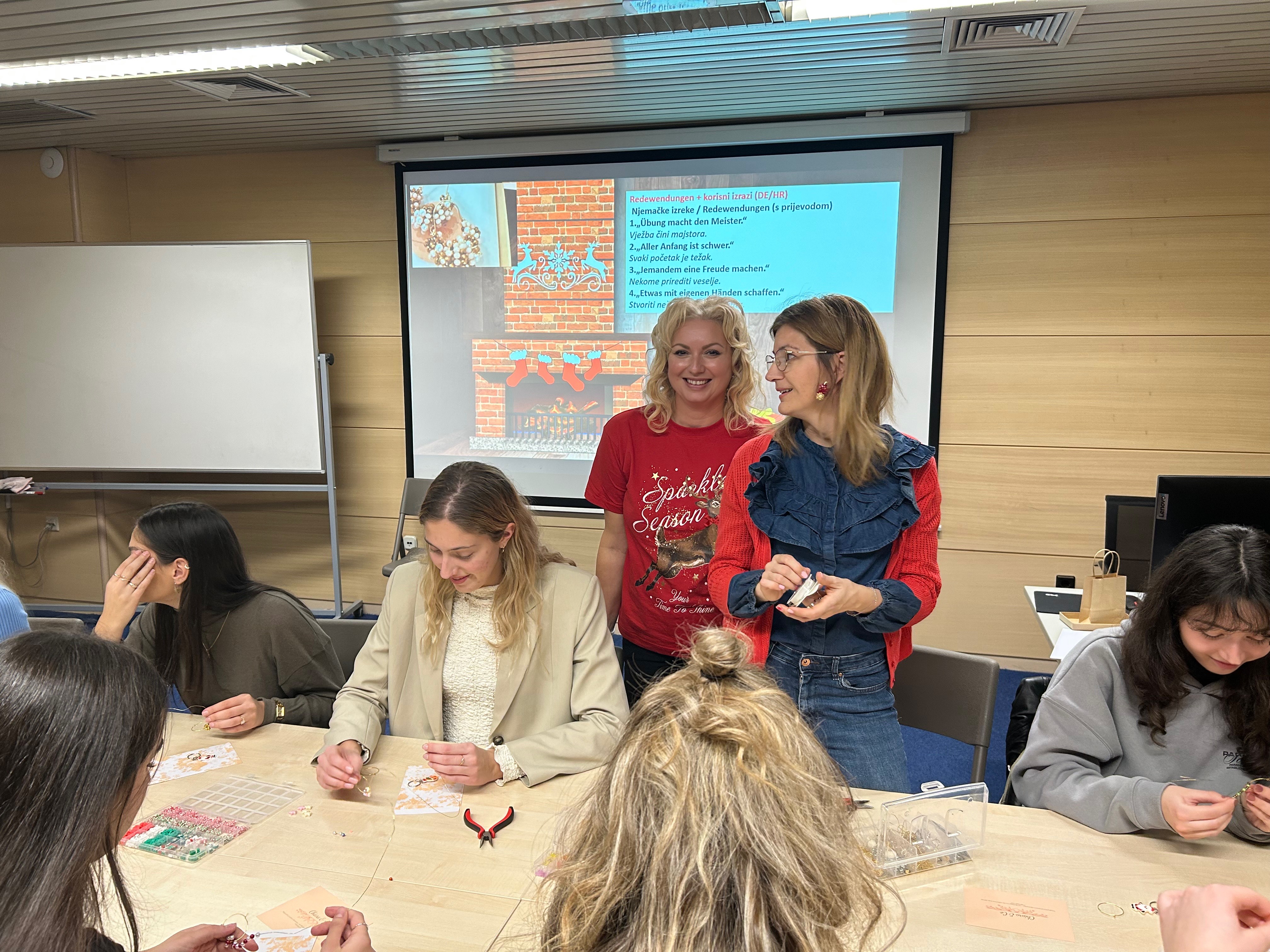 Radionica je spojila njemački jezik, kreativno izražavanje i praktičan rad, pri čemu su studenti kroz autentične zadatke na njemačkom jeziku istraživali vokabular i upute vezane uz izradu božićnog nakita. Sudionici su osmislili vlastite dizajne, upoznali se s tehnikama ručne izrade te kreirali jedinstvene ukrase.